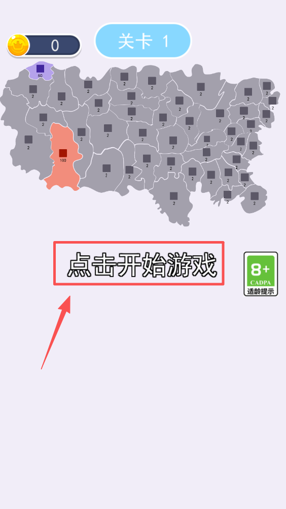 1、在主界面找到“点击开始游戏”按钮,点击进入游戏地图。