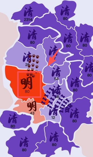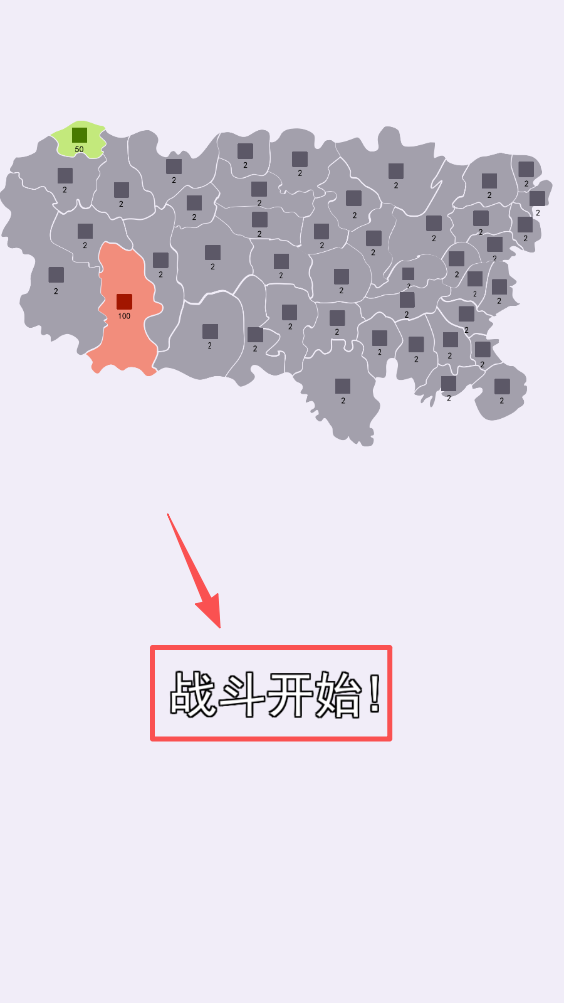 4、当两个不同颜色区域相邻时,可以进行战斗,点击区域开始战斗。