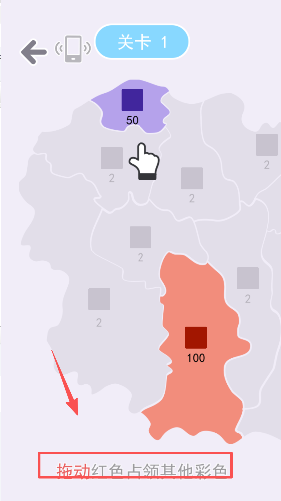 3、在地图上拖动红色区域,占领其他颜色的区域,扩展你的领土。