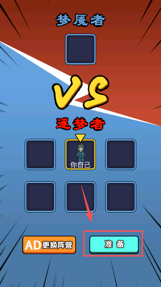 3、在对战准备界面点击“准备”按钮,进入战斗前的最后准备阶段。