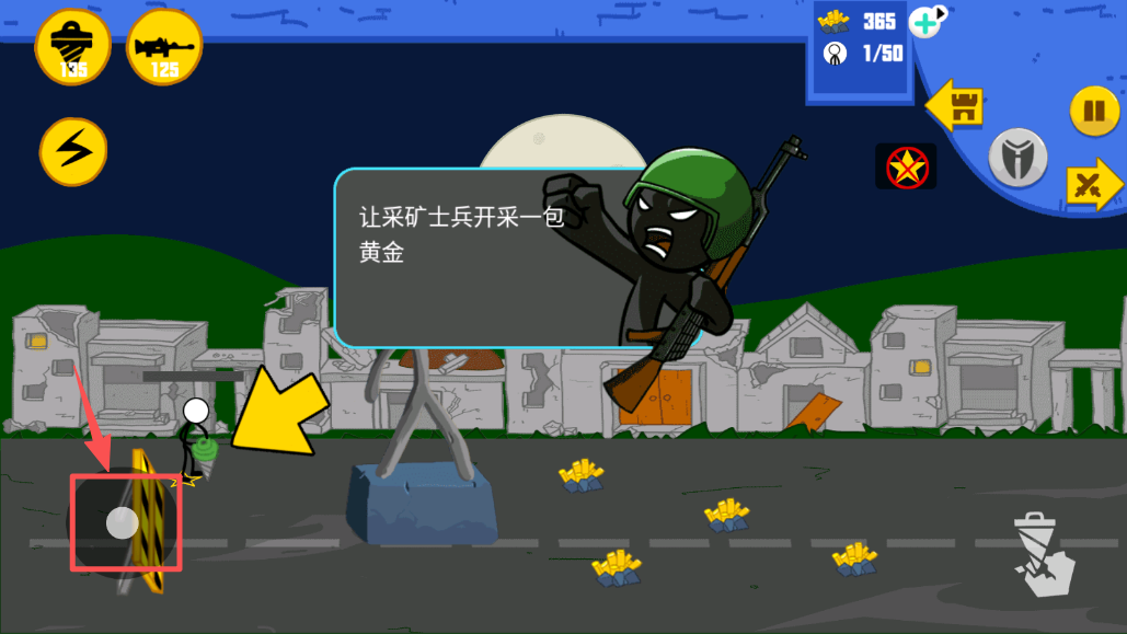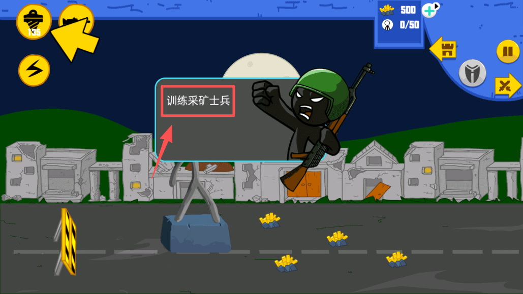 3、在游戏内点击“训练采矿士兵”按钮,开始训练你的部队。