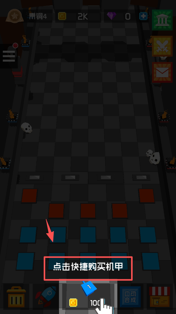 1、点击快捷购买机甲按钮,获取初始防御单位,准备布置防御。