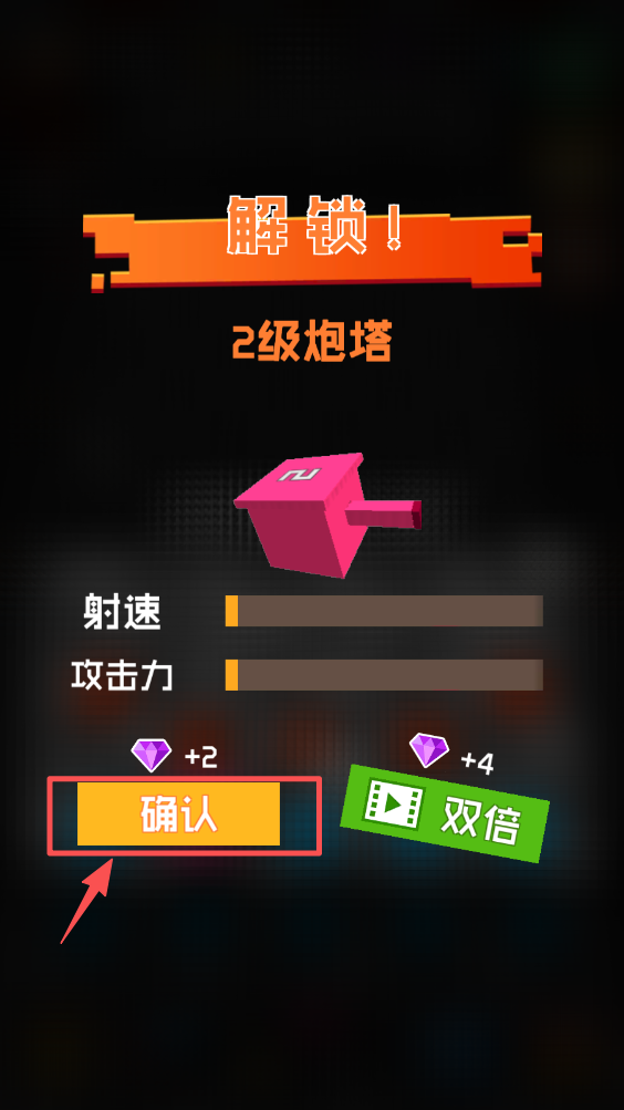 4、点击确认按钮,使用钻石升级炮塔,提升攻击力和射速。