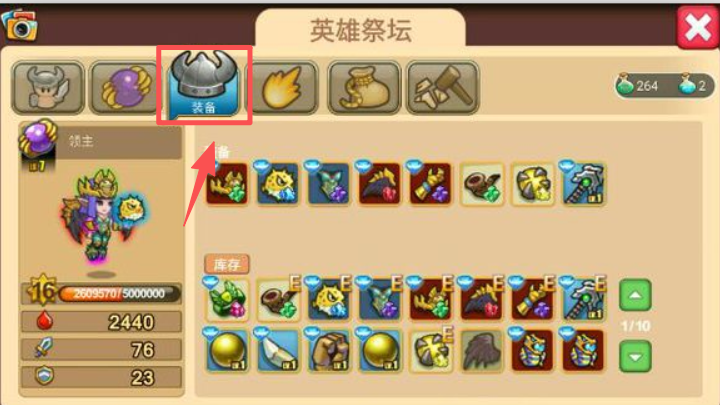 3、在英雄祭坛界面点击“装备”按钮,查看并管理你的英雄装备。