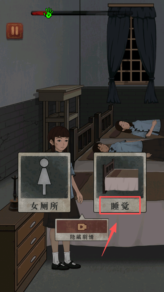 4、在场景中选择“睡觉”或“女厕所”来探索不同区域,寻找解谜关键。