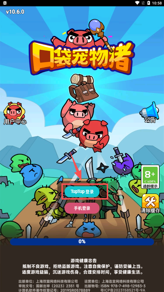 1、选择登录方式,点击“TapTap登录”进入游戏。