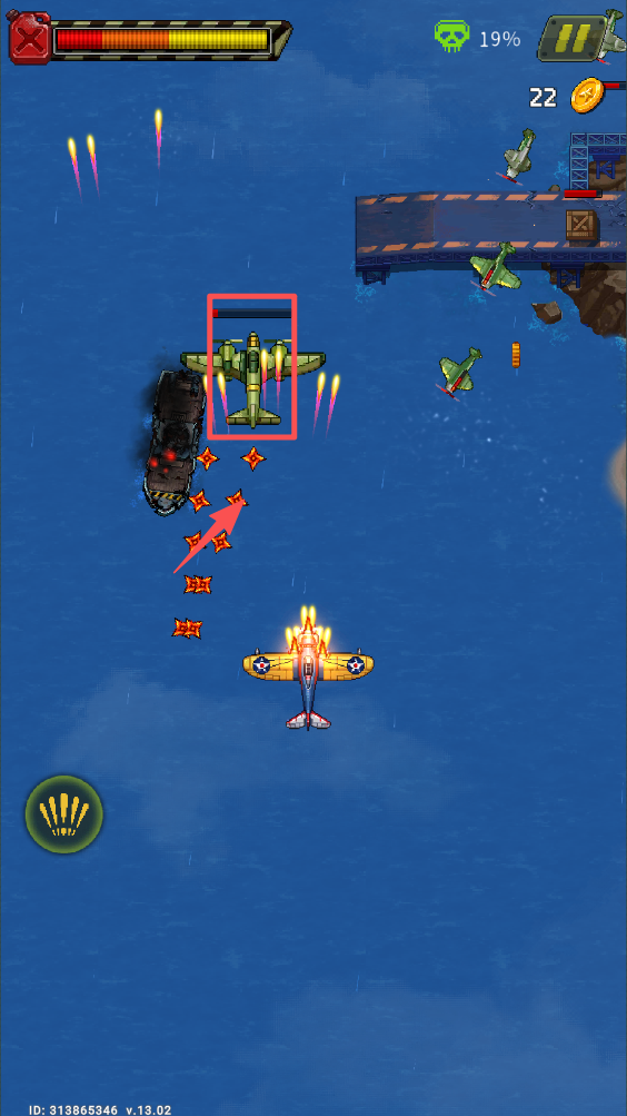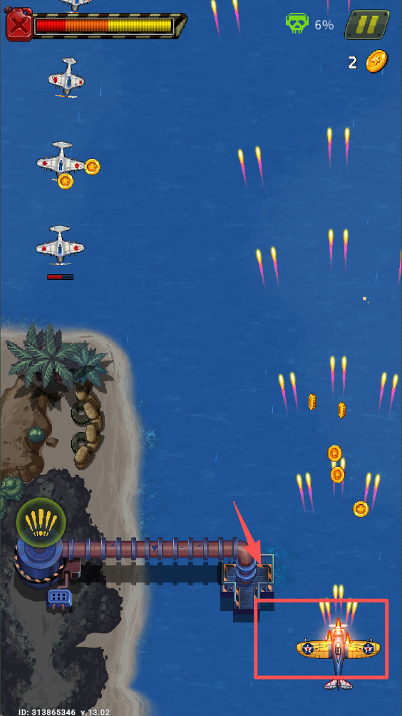 3、在战斗中,点击并拖动飞机图标进行移动,躲避敌人攻击并反击。