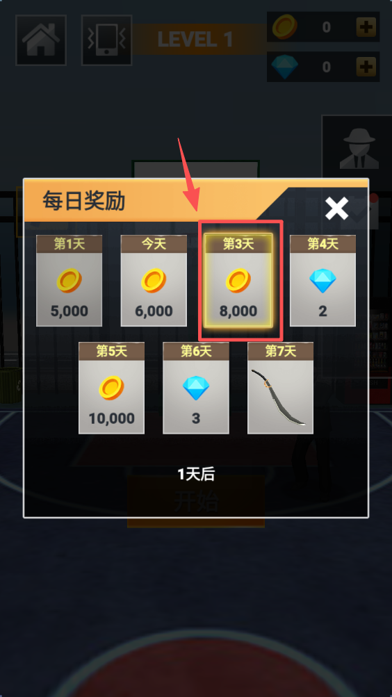 1、查看每日奖励,点击领取金币,为游戏内的升级和购买做准备。