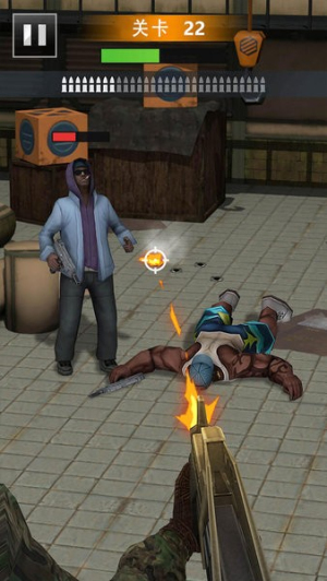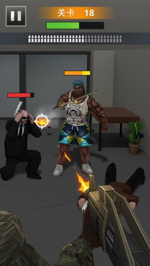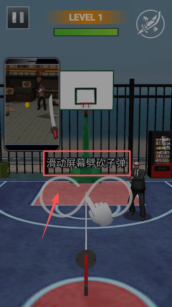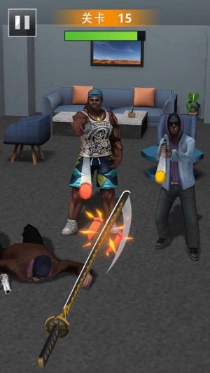 3、滑动屏幕劈砍子弹,控制角色射击,击败目标,完成任务。