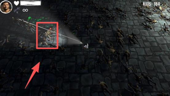 3、使用虚拟摇杆控制角色移动,避开僵尸,寻找安全路径。