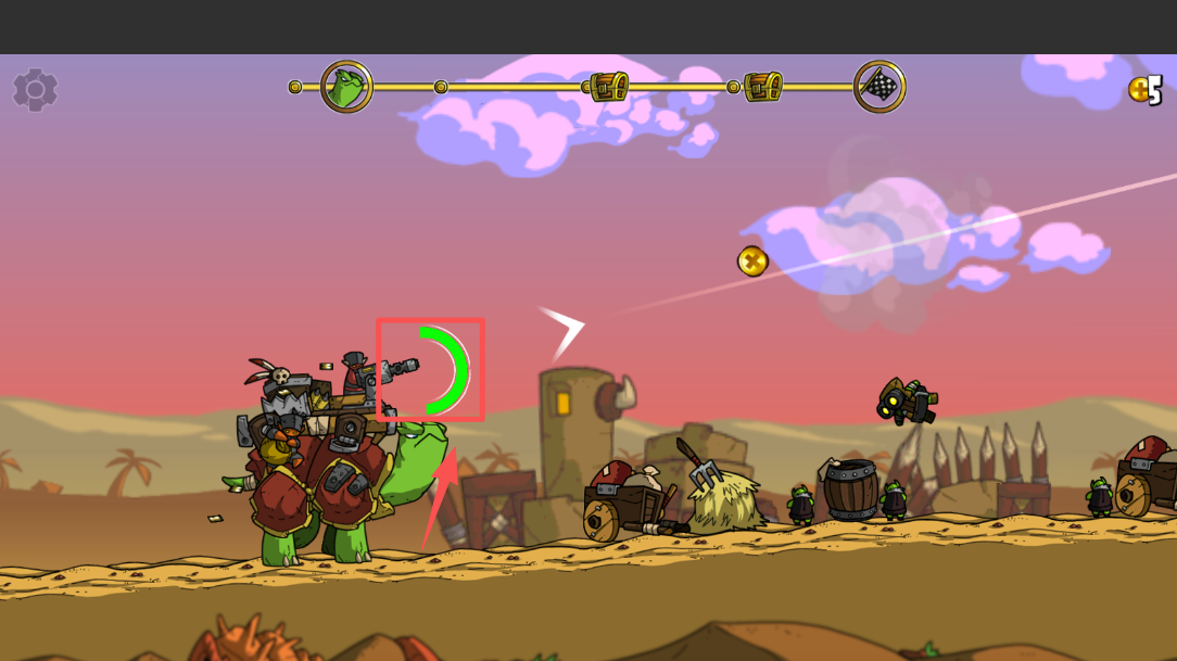 1、玩家通过手指滑动屏幕,操控装备炮塔的乌龟在横向场景中移动,实时瞄准并射击沿途出现的各类敌人。