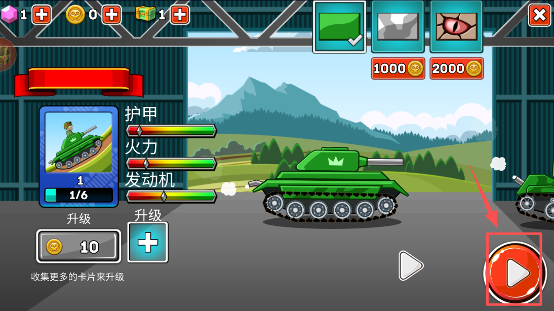 3、点击红色播放按钮,进入坦克升级或战斗准备环节。