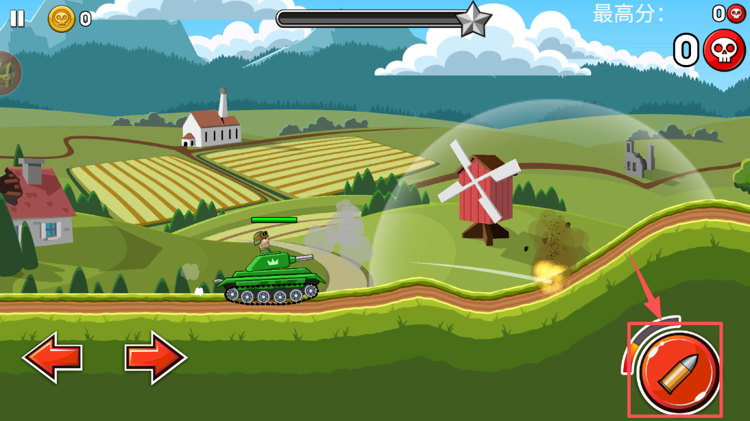 4、点击右侧子弹按钮,操控坦克发射炮弹进行战斗。