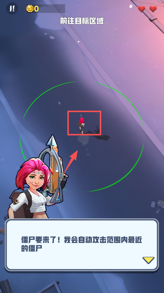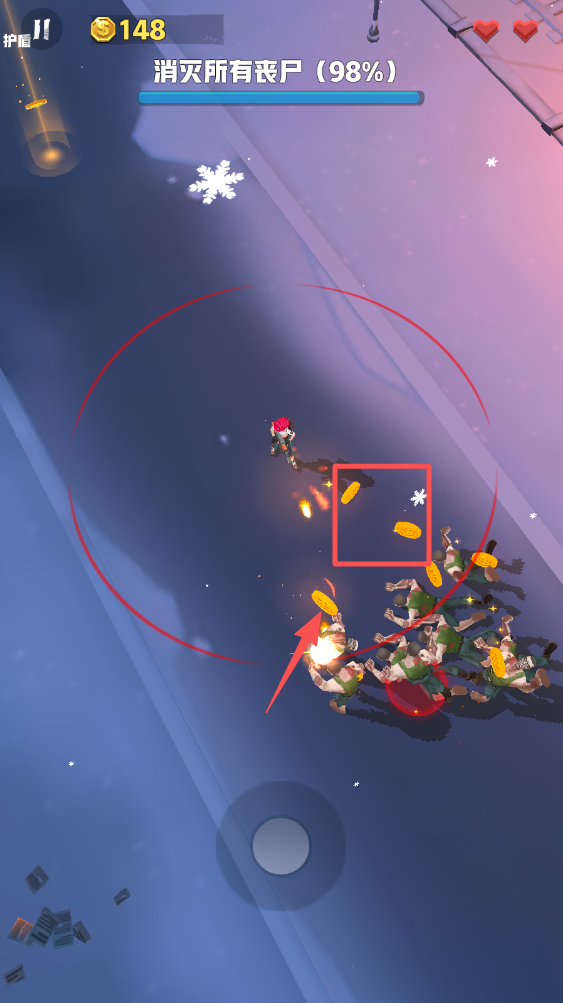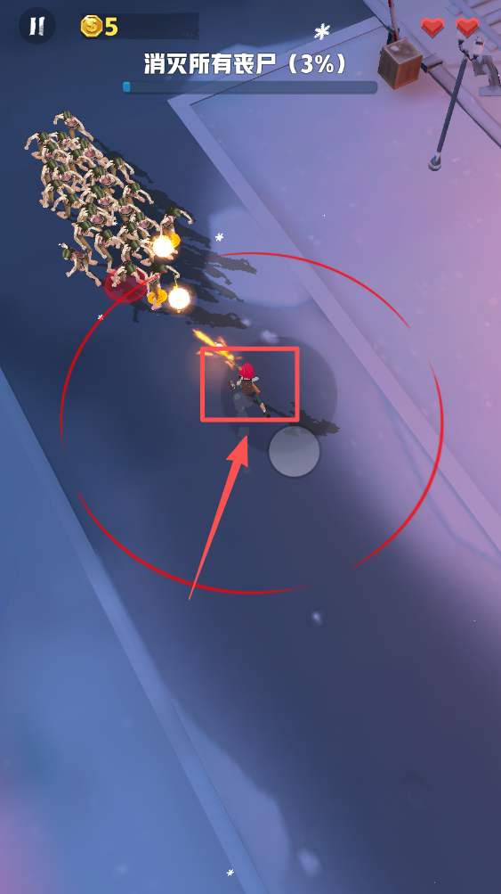 2、角色会自动攻击范围内最近的僵尸,注意保持在攻击范围内。