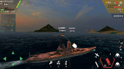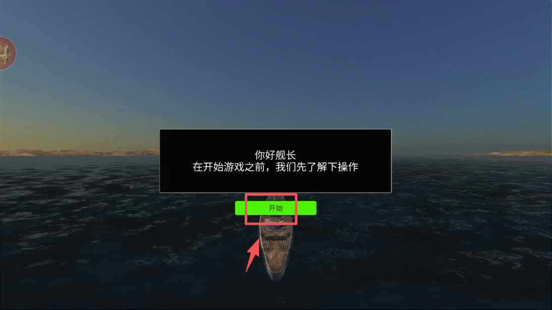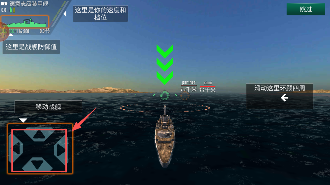 2、使用左下角的虚拟摇杆控制战舰移动,查看周围环境。