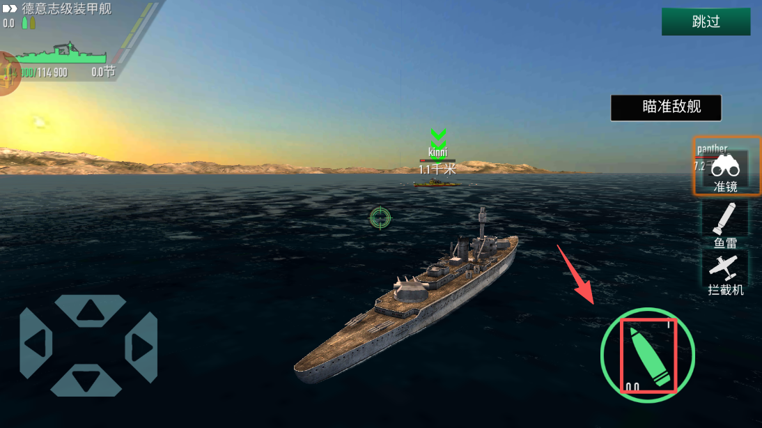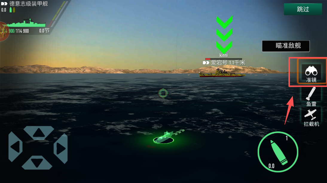 3、点击右侧的“瞄准敌舰”按钮,使用准镜锁定目标。