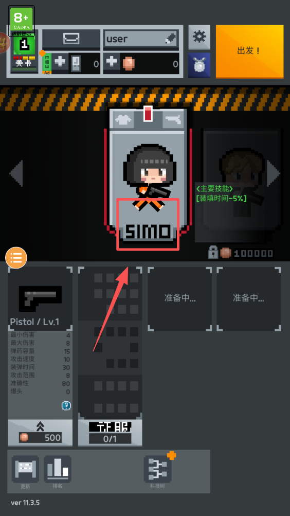 2、在角色界面,选择人物,点击“出发!”按钮开始你的冒险之旅。