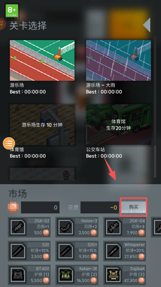 4、在关卡选择界面,选择一个关卡并点击“购买”开始挑战。