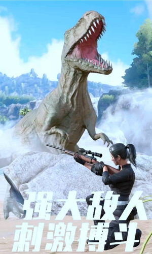 2、紧张激烈的对抗场面,面对庞大而凶猛的史前巨兽,每一次交锋都考验着玩家的反应和勇气,带来心跳加速的刺激感。