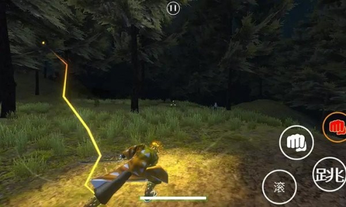 2、使用虚拟摇杆控制角色移动,点击“跳”按钮进行跳跃。