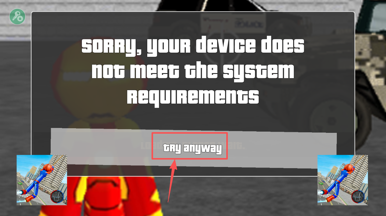1、如果设备不符合要求,点击“Try anyway”尝试运行游戏。