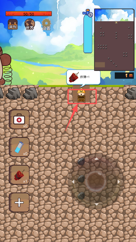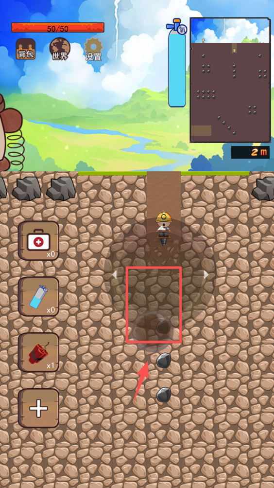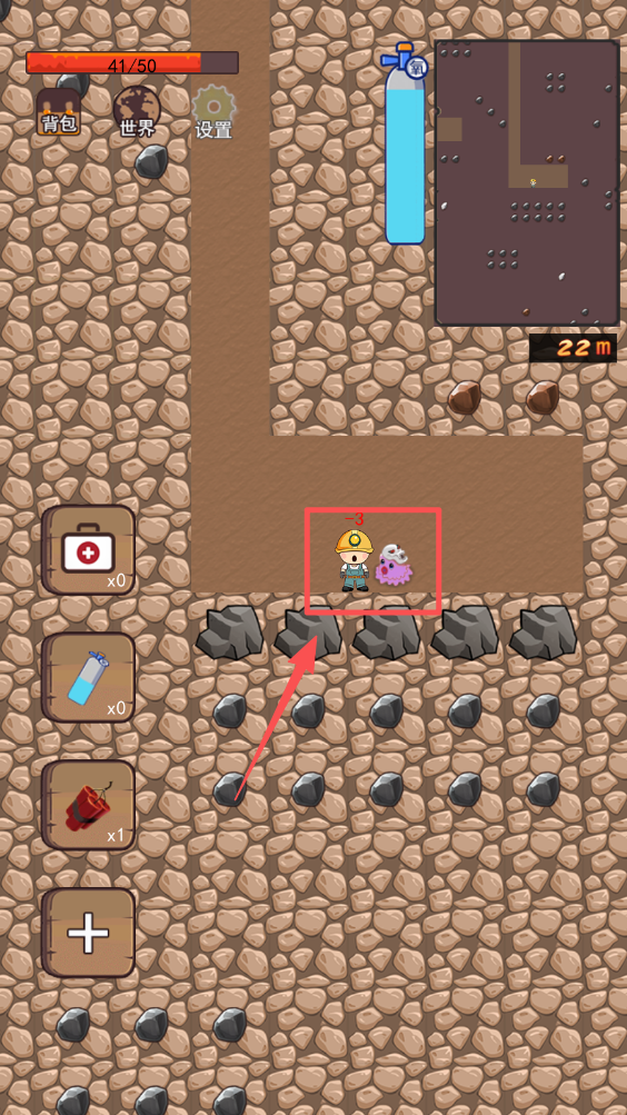 1、点击背包中的炸弹图标,准备在矿洞中使用炸药。