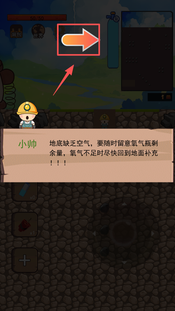 2、点击箭头按钮返回地面,当氧气不足时及时补充。