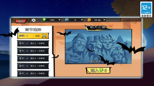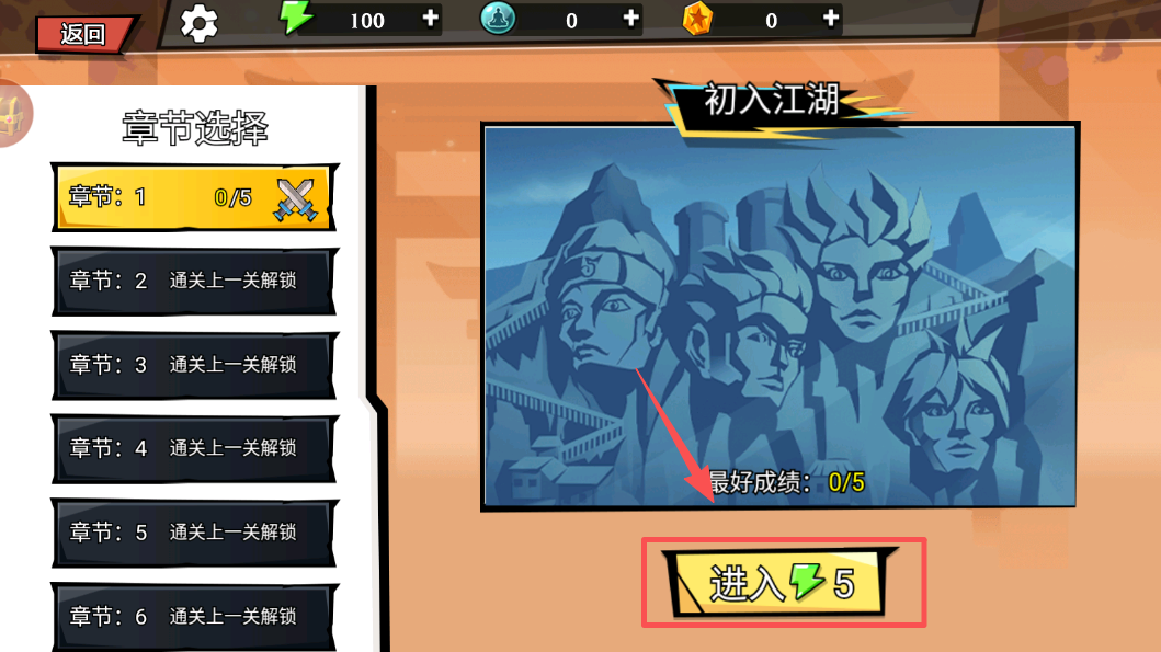 3、然后,选择章节进入游戏,点击“进入”按钮开始冒险。