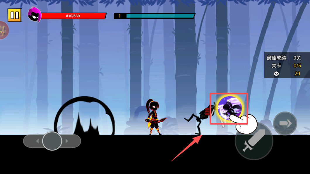 4、最后,在游戏过程中使用虚拟摇杆和技能按钮,击败敌人并完成关卡挑战。