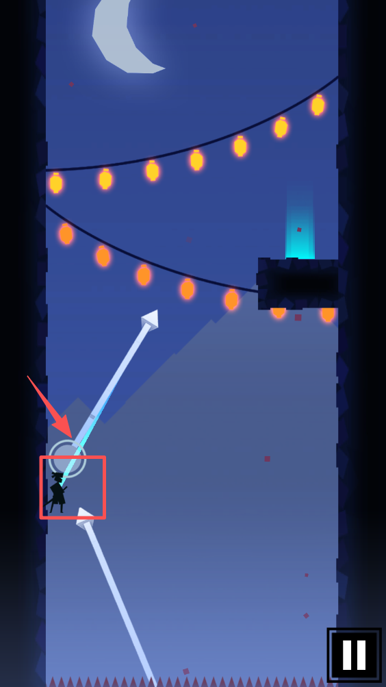 4、最后,观察屏幕中的忍者,通过精准操作帮助他到达塔顶完成任务。