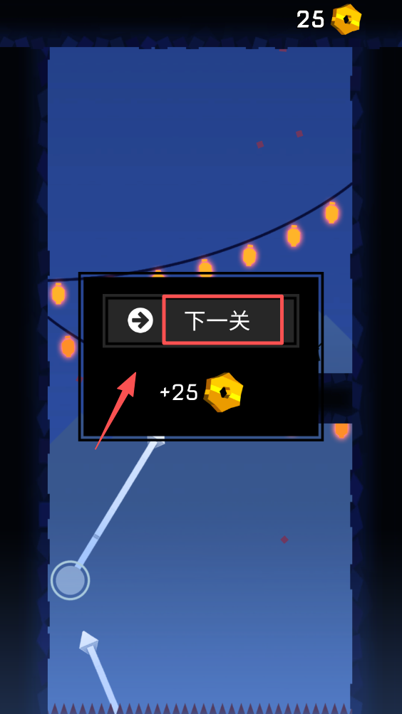 3、然后,在成功跳跃到塔顶后,点击“下一关”继续挑战。