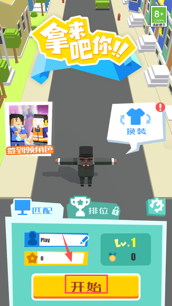 1、进入游戏后,点击“开始”按钮进入主界面,点击“Play”并选择角色开始游戏。