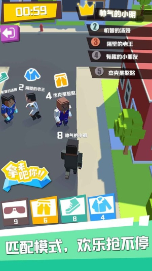 拿来吧你这个休闲io手游采用清新卡通画风,立体方块构建出多样地图场景。在这里任意选择心仪角色,体验多模式竞技乐趣。简单操控即可秀出招式,拾取道具配合灵活走位,在在线对决中避开陷阱与对手周旋。最终击败所有人,成为赛场冠军。