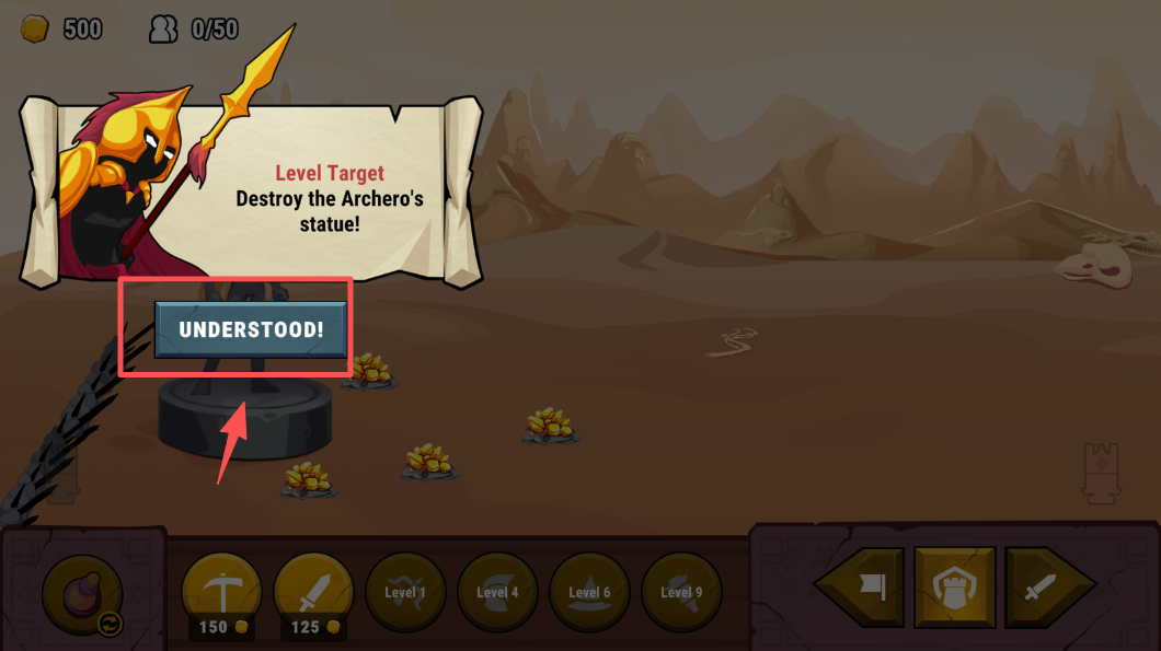 1、在任务界面,点击“UNDERSTOOD!”按钮确认理解任务目标,准备开始战斗。