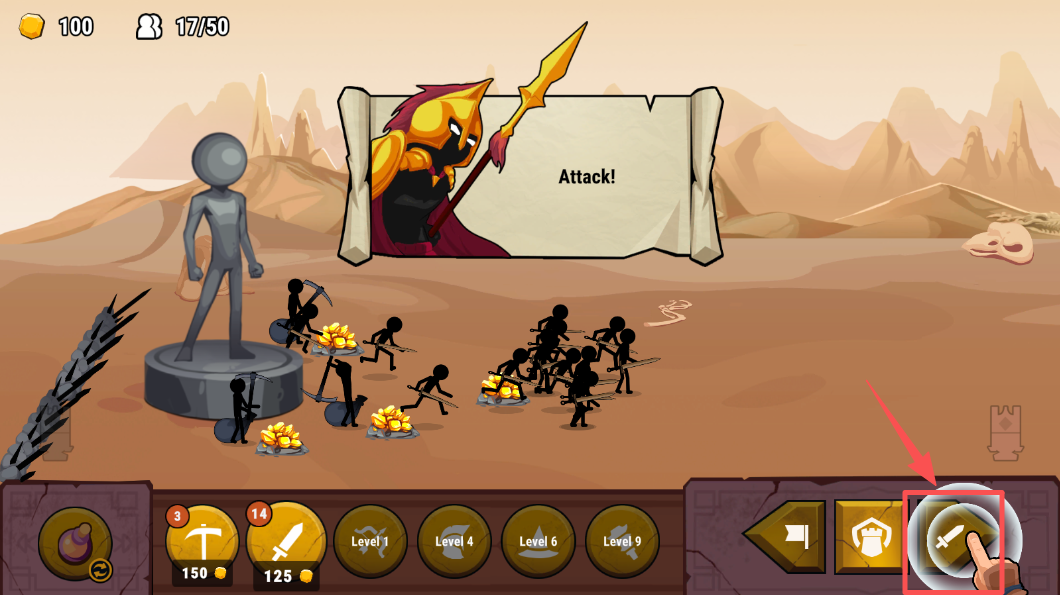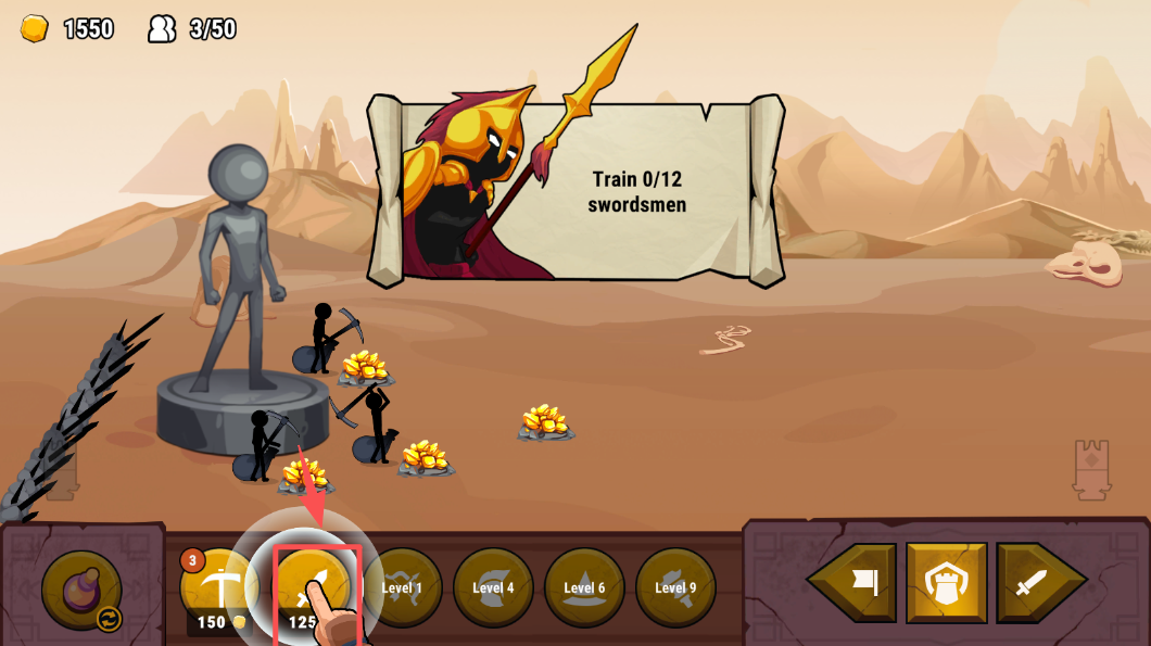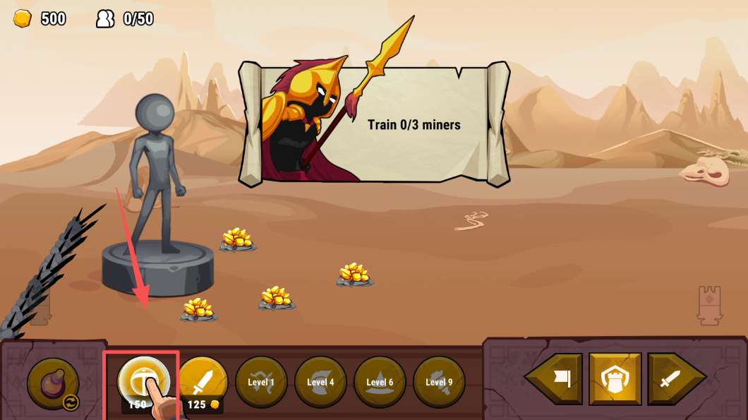 2、在训练界面,点击图标训练矿工,收集资源以支持你的军队建设。