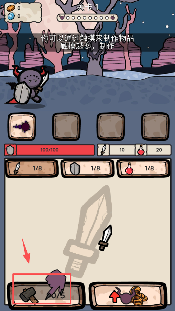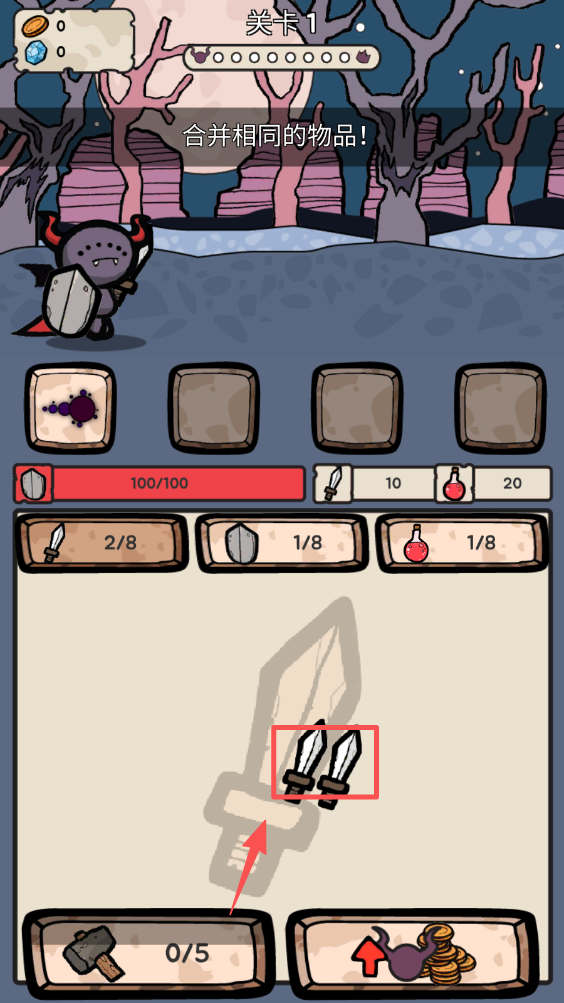 2、当物品栏满时,合并相同物品以升级,获取更高级装备。