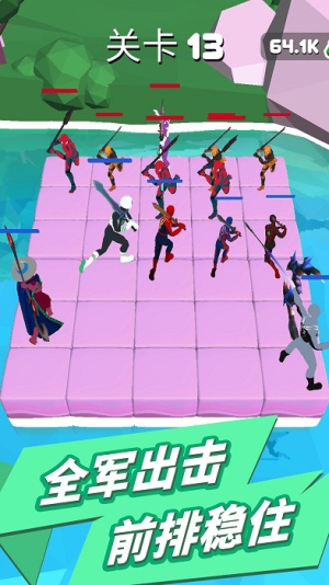 2、通过融合低级角色来获取更强力的战士,这种独特的升级方式让玩家在资源管理中感受成长的乐趣,每一步合并都可能改变战局。