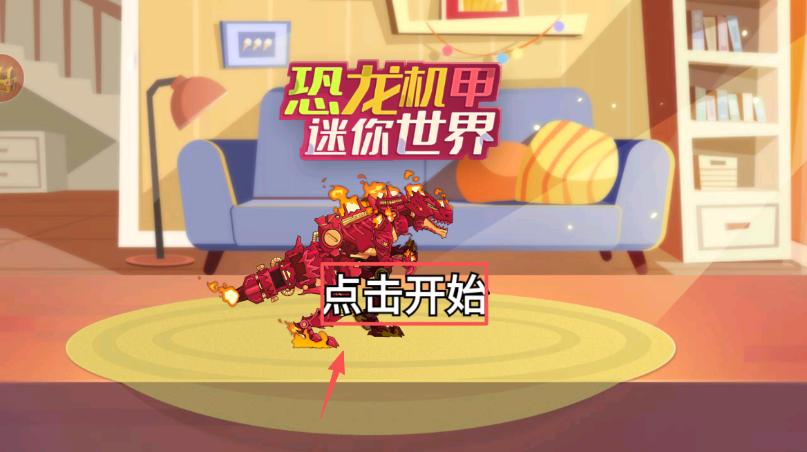 1、首先,点击主界面的“点击开始”按钮,进入游戏,选择你的恐龙机甲,准备开始战斗。