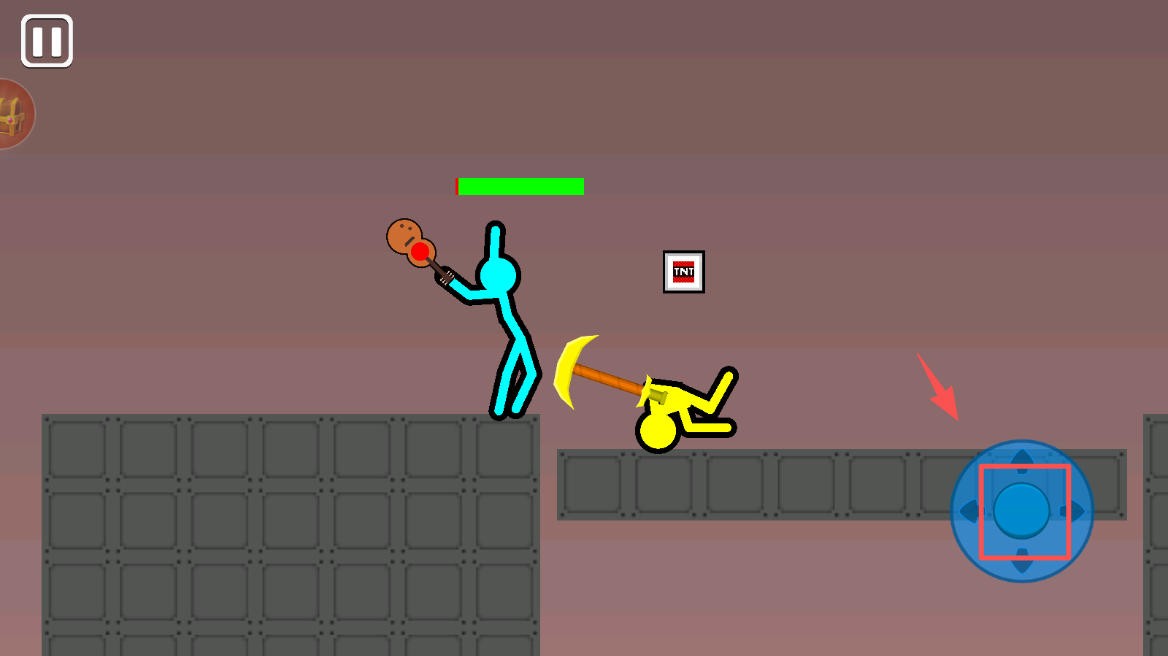 1、通过虚拟摇杆和按键控制火柴人移动、跳跃及攻击,简单易上手但精通需练习,适合各水平玩家。