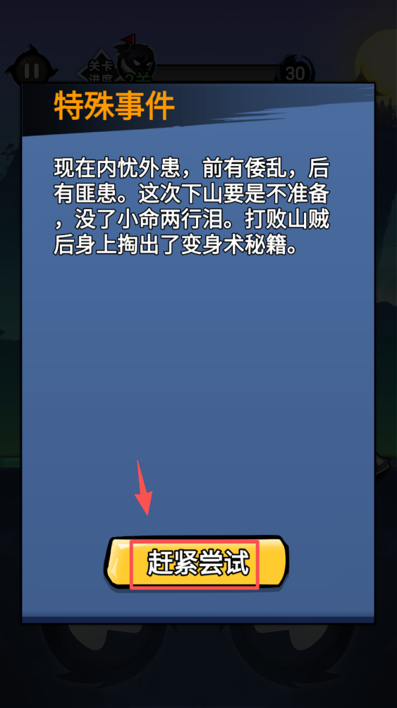 3、特殊事件触发时,点击“赶紧尝试”按钮,体验变身等特殊能力。