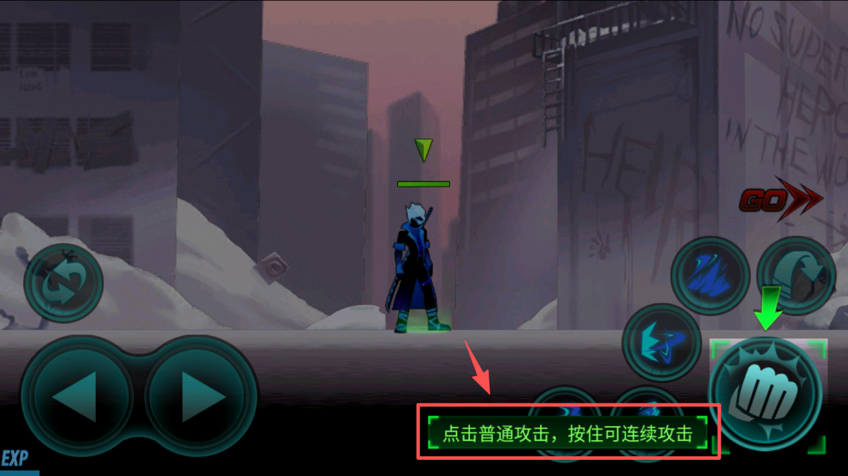 3、点击攻击按钮进行普通攻击,长按可进行连续攻击,击败敌人。