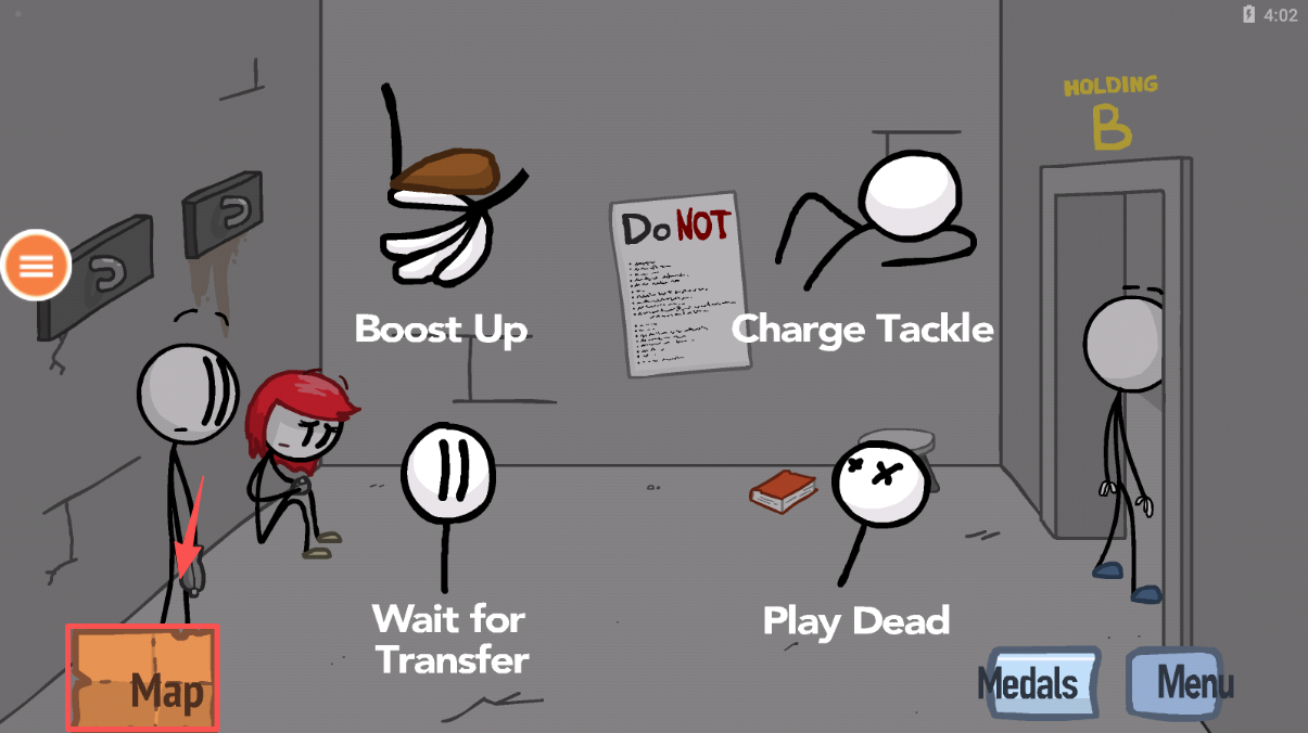 2、接着,查看地图和选项,选择“Map”了解当前位置和任务。