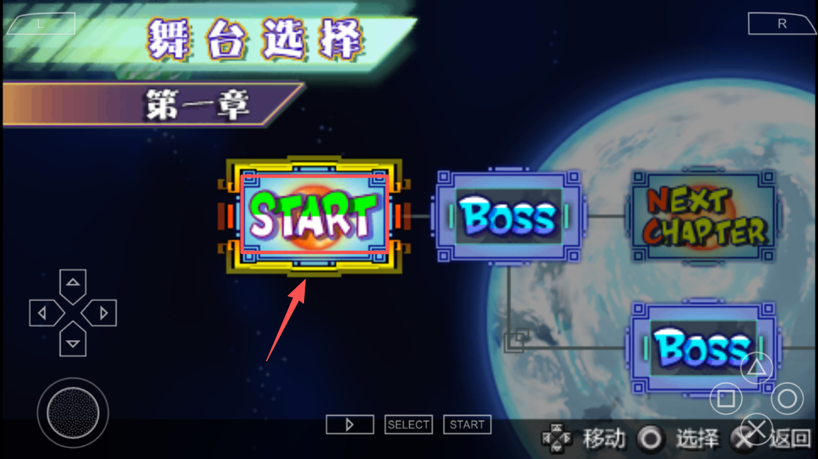 2、在舞台选择界面,点击 “START” 选项,开始第一章内容。