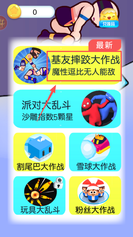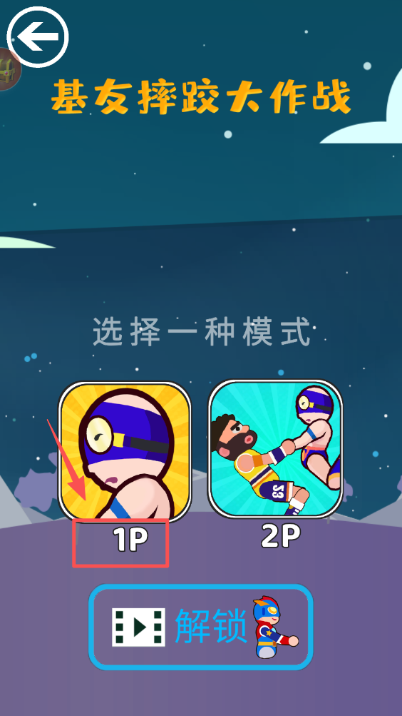 1、选择游戏模式。点击“基友摔跤大作战”进入,选择单人或双人游戏模式。
