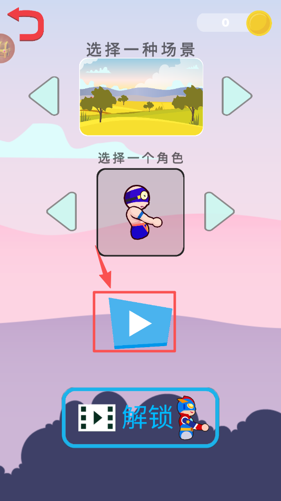 2、选择场景和角色。选择一个场景和一个角色,点击播放按钮开始游戏。