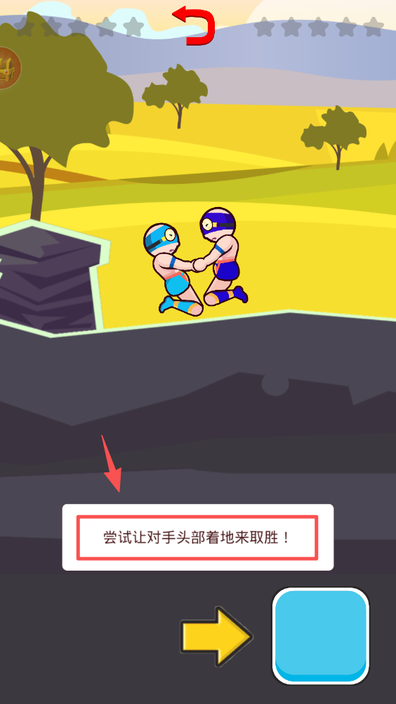 4、尝试让对手倒地。通过操作让对手头部着地,赢得比赛胜利。