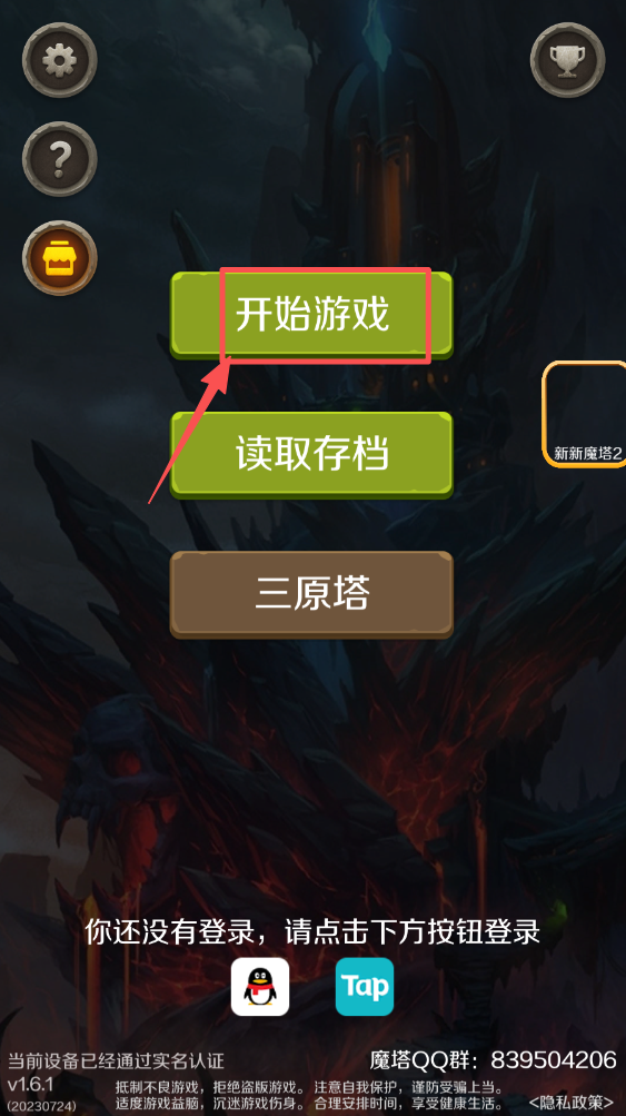 1、首先,点击“开始游戏”按钮,进入游戏主界面,准备开始你的冒险。
