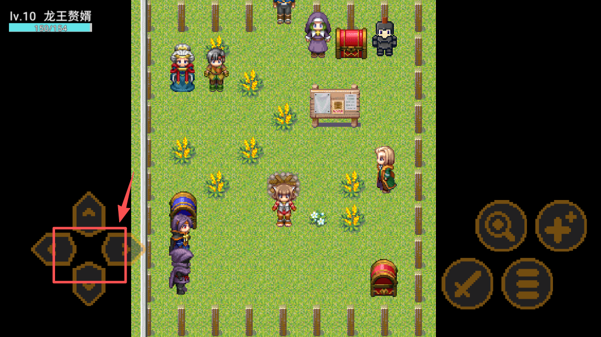 2、使用虚拟摇杆控制角色移动,探索游戏世界,与NPC互动。