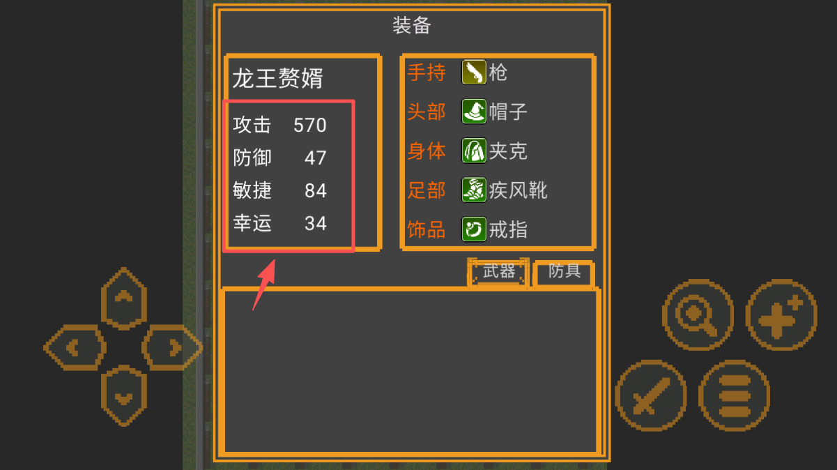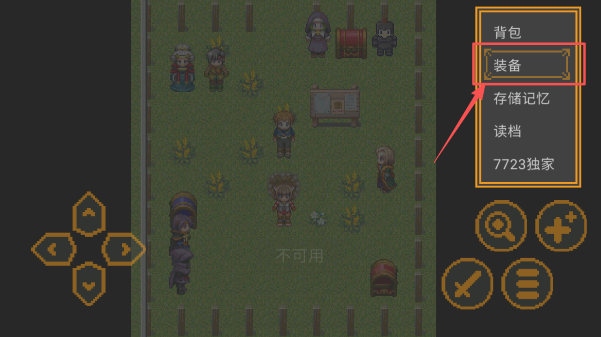 4、在菜单中选择“装备”选项,查看并装备你的武器和防具,提升战斗力。