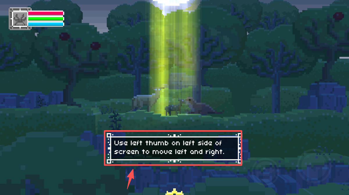 3、学习基本操作,按照屏幕提示使用拇指在左侧屏幕滑动来控制角色左右移动。